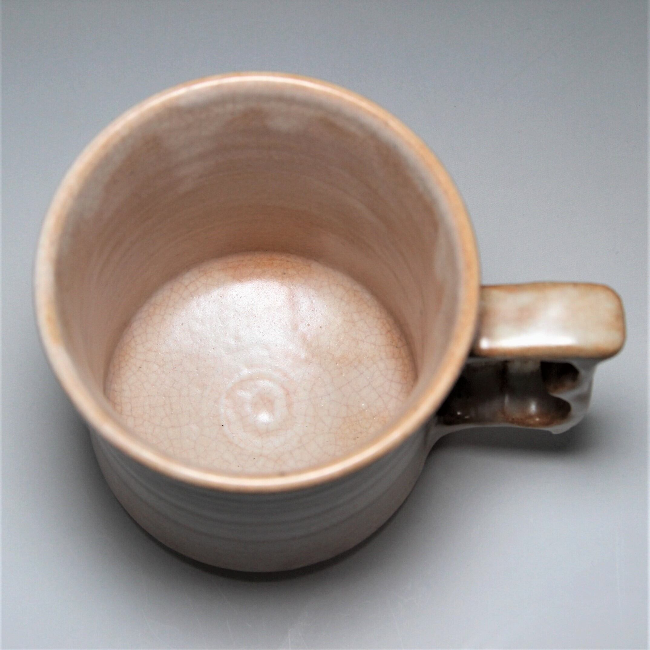 松雲山窯(松浦洞心 作) 縦8.8cm×横12.0cm×高さ10.5cm 紙箱包装 萩焼らしい枇杷色のやわらかい色合いのビアマグカップです。